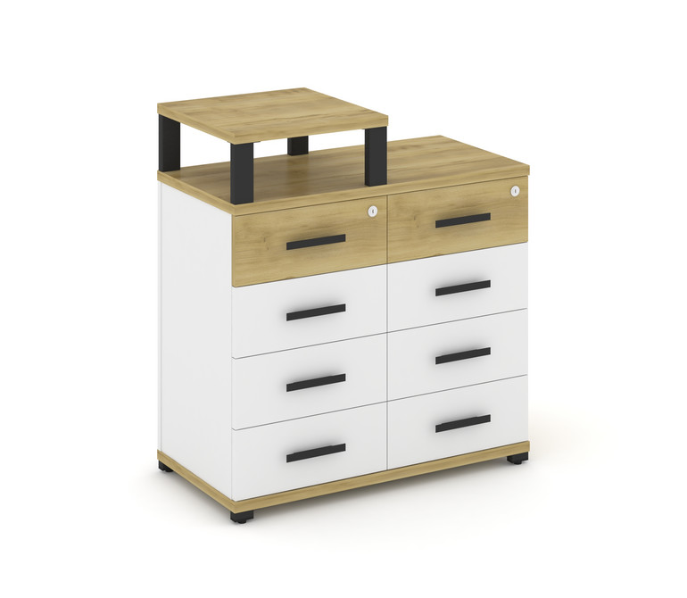 Concept Тумба приставная широкая 8 ящ. с надставкой узкой CN.TSP-014 B Дуб Винченцо/Белый Бриллиант/