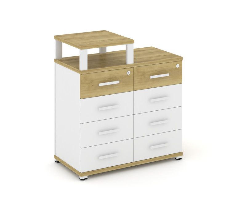 Concept Тумба приставная широкая 8 ящ. с надставкой узкой CN.TSP-014 W Дуб Винченцо/Белый Бриллиант/
