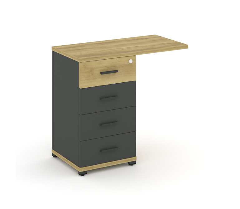 Concept Тумба приставная узкая со свесом 4 ящ. CN.TUS-001 A Дуб Винченцо/Антрацит/Металл Антрацит 83