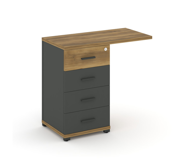 Concept Тумба приставная узкая со свесом 4 ящ. CN.TUS-001 A Сандал Янтарный/Антрацит/Металл Антрацит