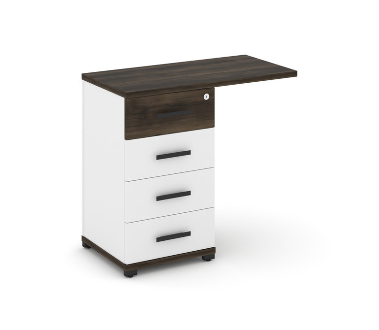 Concept Тумба приставная узкая со свесом 4 ящ. CN.TUS-001 B Дуб Мали/Белый Бриллиант/Металл Черный 8