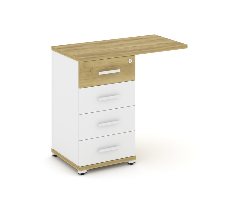 Concept Тумба приставная узкая со свесом 4 ящ. CN.TUS-001 W Дуб Винченцо/Белый Бриллиант/Металл Белы