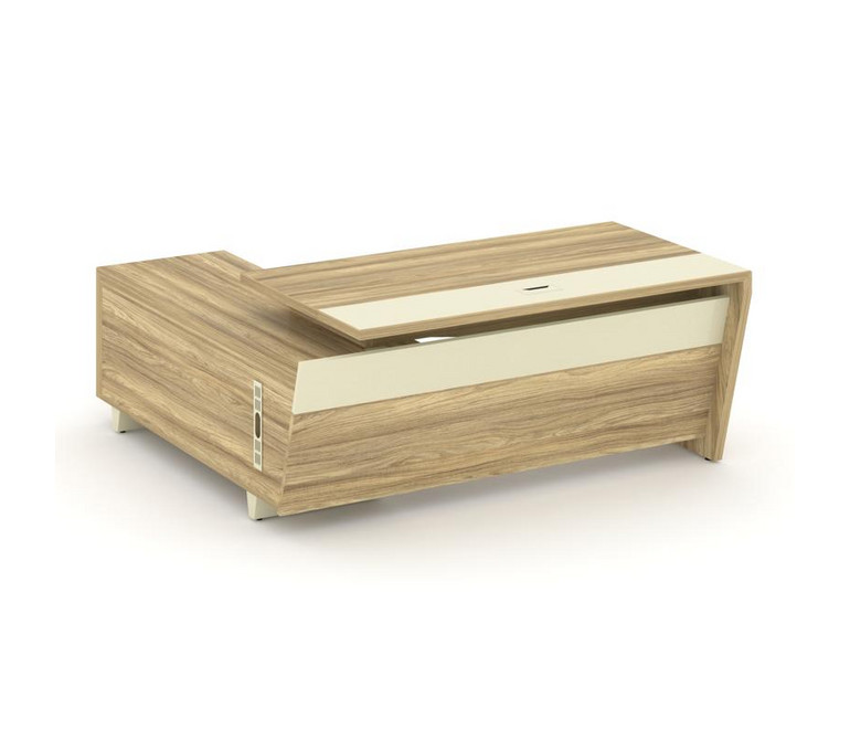 Corner Стол руководителя с тумбой COR.SRT-18 (R) Гикори Песочный/Ваниль/Металл Ваниль 1800*1800*750
