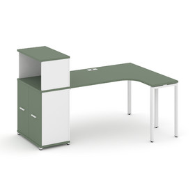 Concept Стол эргономичный с опорным распаш. шкафом с надставкой низ. CN.SA-213(L) W Кобо/Металл Бел