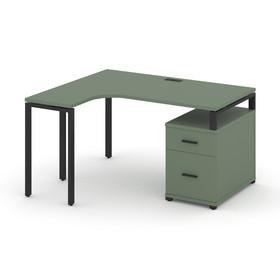 Concept Стол эргономичный с опорной тумбой CN.SA-302(L) B Кобо/Металл Черный 1380/1746*1180*750