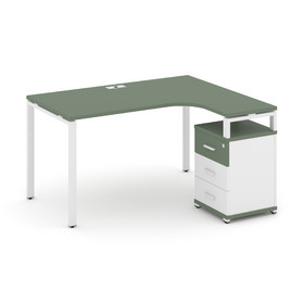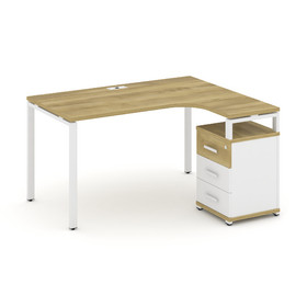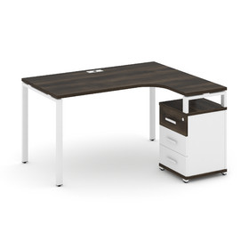 Concept Стол эргономичный с опорной тумбой CN.SA-305(L) W Кобо/Металл Белый 1380*1180/1546*750