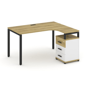 Concept Стол эргономичный с опорной тумбой CN.SA-305(L) B Сандал Янтарный/Белый Бриллиант/Металл Чер