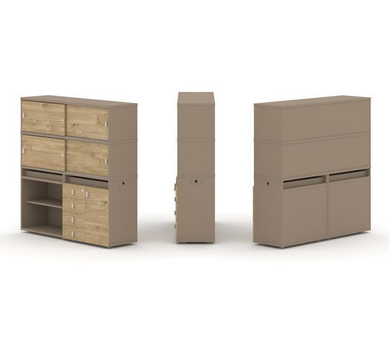 Estetica Набор №11. Тумба двойная+высокая надставка ES.NB.2V-11 Латте/Тиквуд Светлый 1500*410*1520