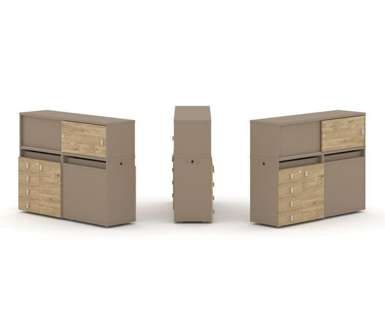 Estetica Набор №17. Тумба двойная+низкая надставка ES.NB.2N-17 Латте/Тиквуд Светлый 1500*410*1135