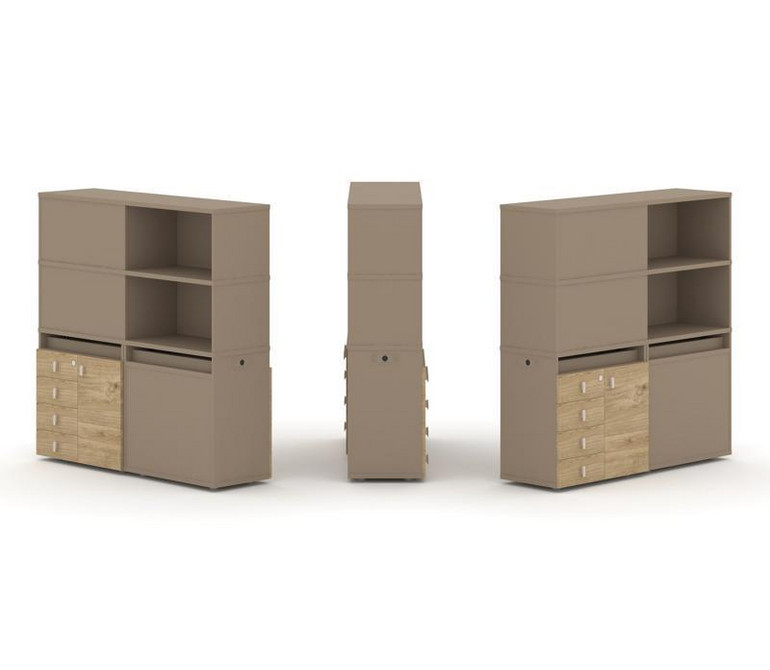Estetica Набор №18. Тумба двойная+высокая надставка ES.NB.2V-18 Латте/Тиквуд Светлый 1500*410*1520