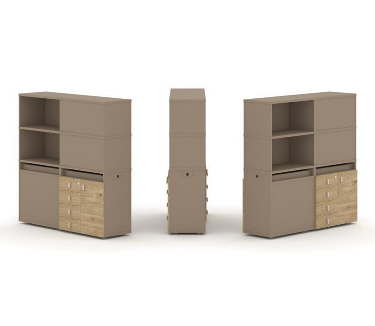 Estetica Набор №19. Тумба двойная+высокая надставка ES.NB.2V-19 Латте/Тиквуд Светлый 1500*410*1520