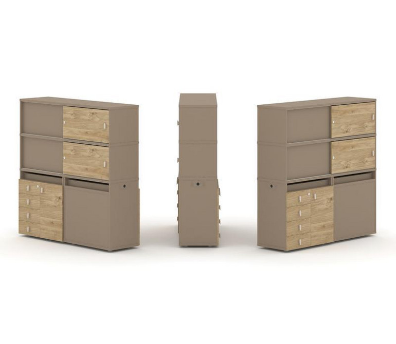 Estetica Набор №24. Тумба двойная+высокая надставка ES.NB.2V-24 Латте/Тиквуд Светлый 1500*410*1520