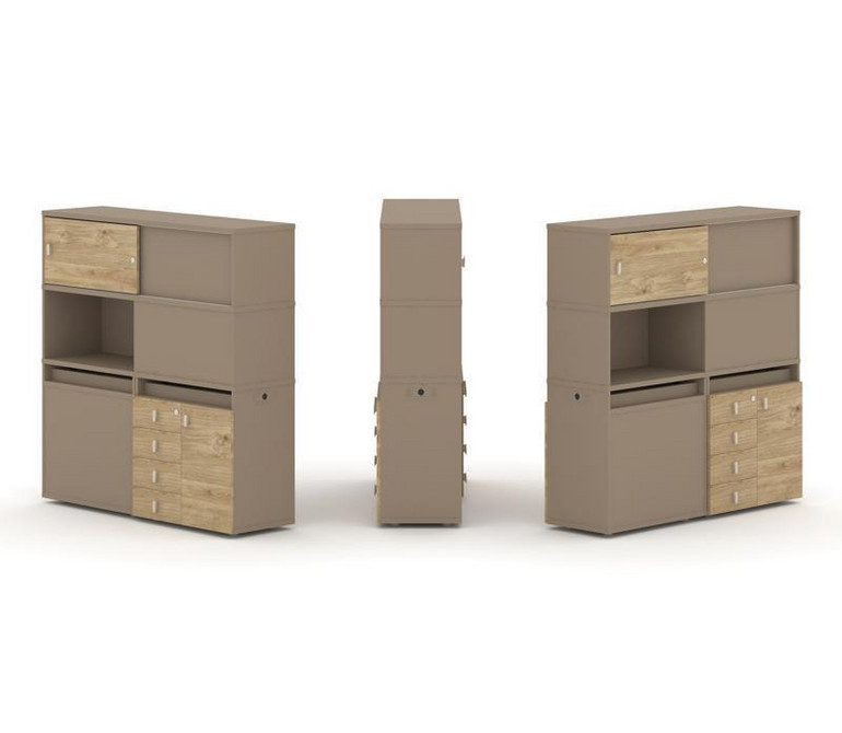 Estetica Набор №31. Тумба двойная+высокая надставка ES.NB.2V-31 Латте/Тиквуд Светлый 1500*410*1520