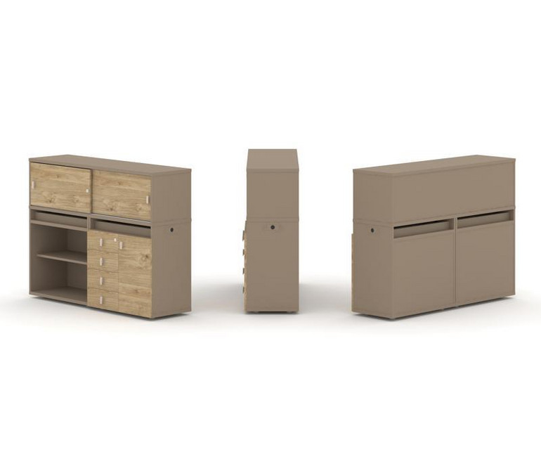 Estetica Набор №8. Тумба двойная+низкая надставка ES.NB.2N-8 Латте/Тиквуд Светлый 1500*410*1135