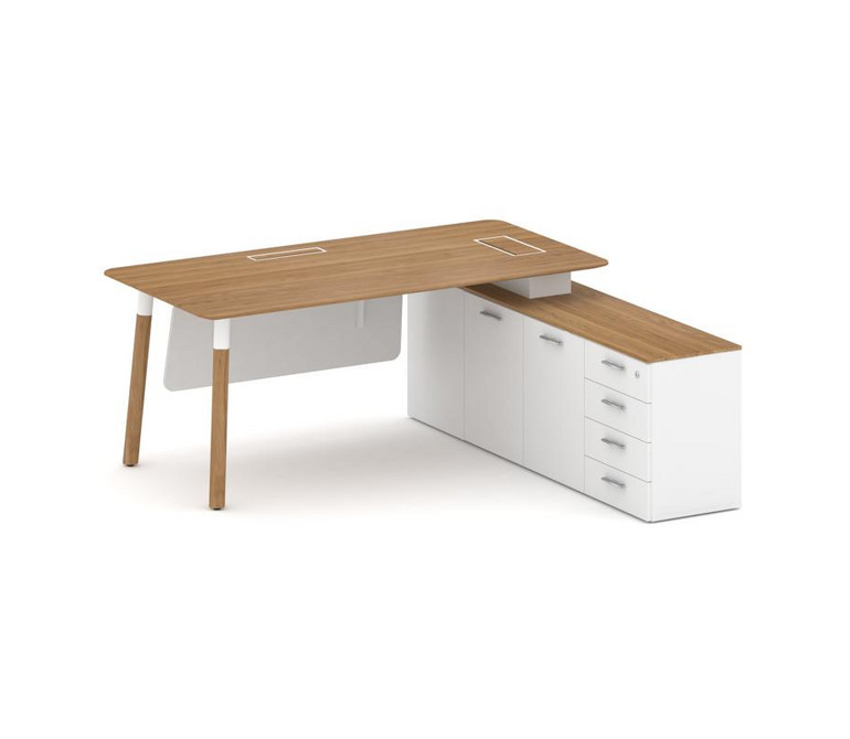 Fresco Стол руководителя FR.SR-18 (R) Дуб Светлый/Белый Бриллиант UM/Металл Белый/Нерж. Сталь 1800*1