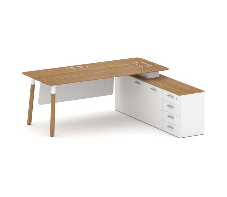 Fresco Стол руководителя FR.SR-20 (R) Дуб Светлый/Белый Бриллиант UM/Металл Белый/Нерж. Сталь 2000*1