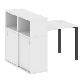 - Линейные рабочие станции на П-образных опорах с опорными тумбами/шкафами