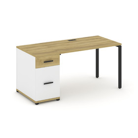 Concept Стол рабочий с 1 опорной тумбой CN.SP-406 B Дуб Винченцо/Белый Бриллиант/Металл Черный 1600*