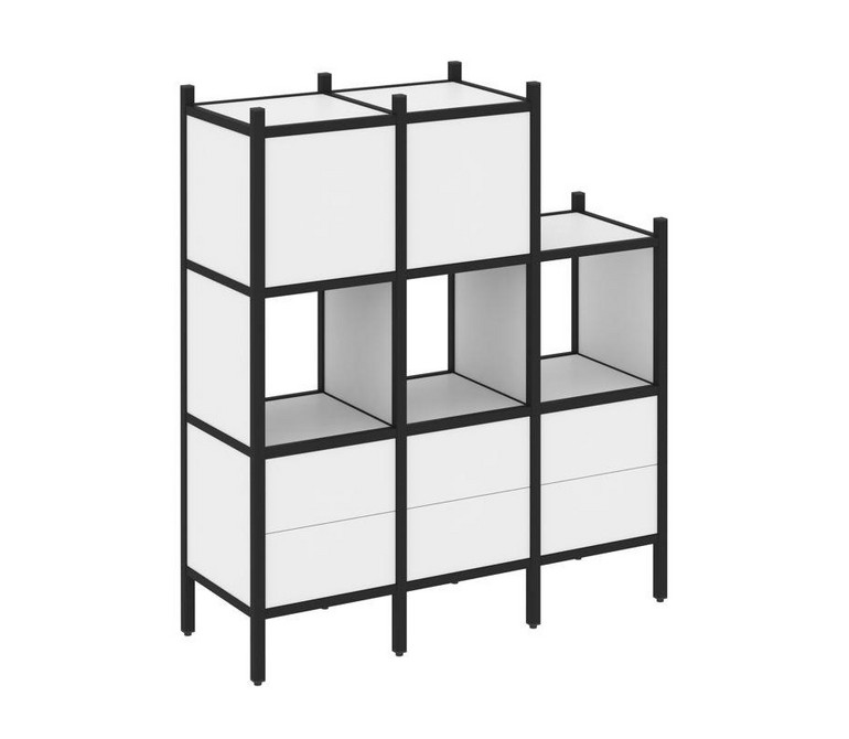 Loft Прямой стеллаж VR.L-15 Белый Бриллиант/Металл Черный 1278*446*1458