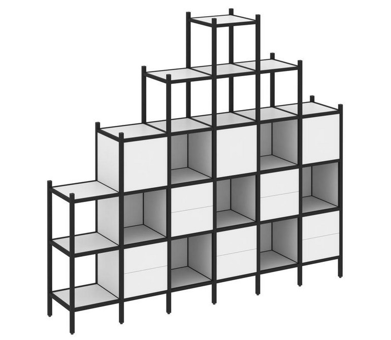 Loft Прямой стеллаж VR.L-24 Белый Бриллиант/Металл Черный 2526*446*2280