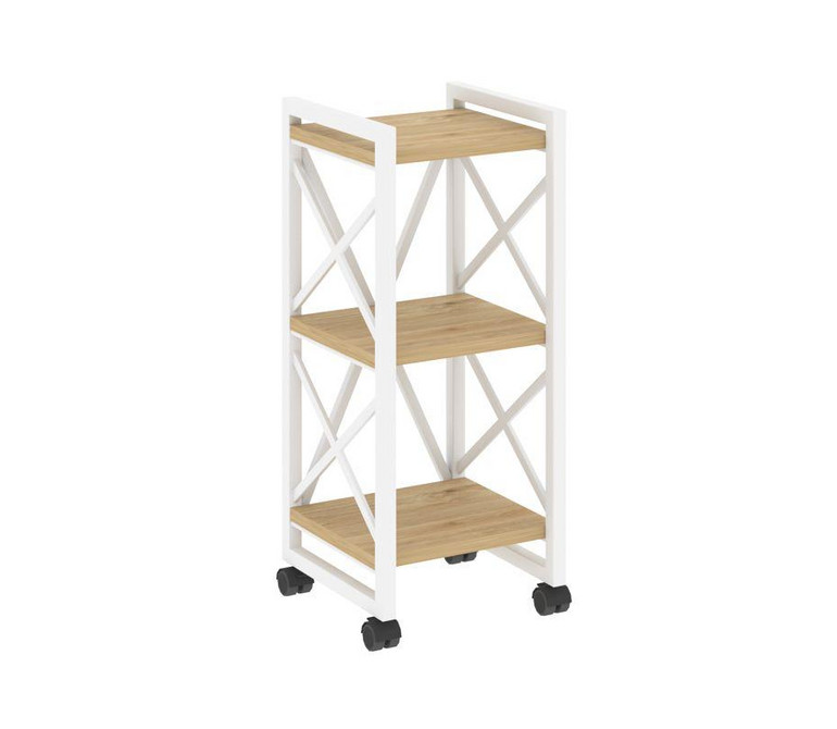 Loft Стеллаж на колесных опорах-3 полки VR.L-MST.K-3.4 Тиквуд Светлый/Металл Белый 400*400*968