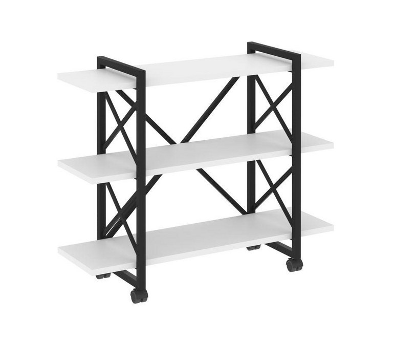 Loft Стеллаж на колесных опорах-3 полки VR.L-MST.K-3.8V Белый Бриллиант/Металл Черный 1200*400*968