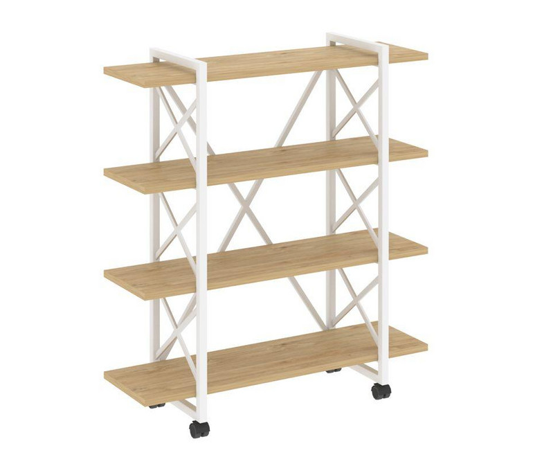 Loft Стеллаж на колесных опорах-4 полки VR.L-MST.K-4.8V Тиквуд Светлый/Металл Белый 1200*400*1334