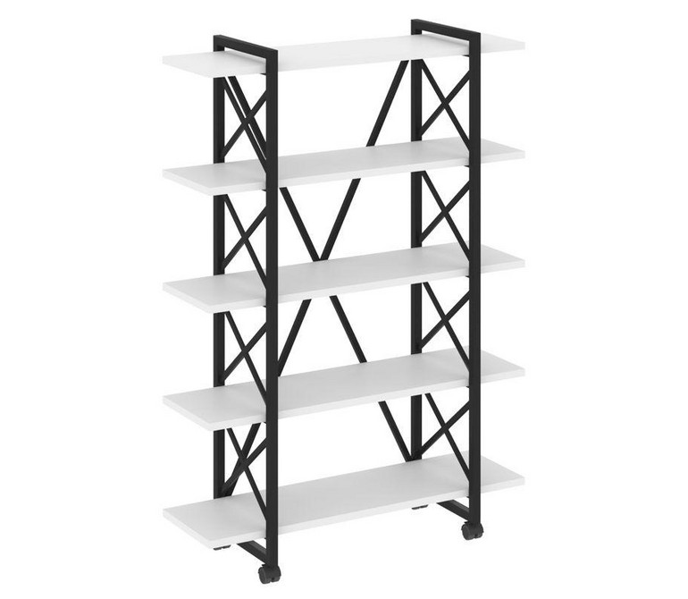 Loft Стеллаж на колесных опорах-5 полок VR.L-MST.K-5.8V Белый Бриллиант/Металл Черный 1200*400*1704