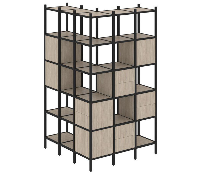 Loft Угловой внешний стеллаж наборный VR.L-53 Дуб Аттик/Металл Черный 1278*1278*2280