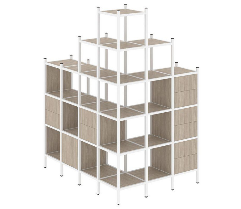 Loft Угловой внешний стеллаж наборный VR.L-56 Дуб Аттик/Металл Белый 1694*1278*2280