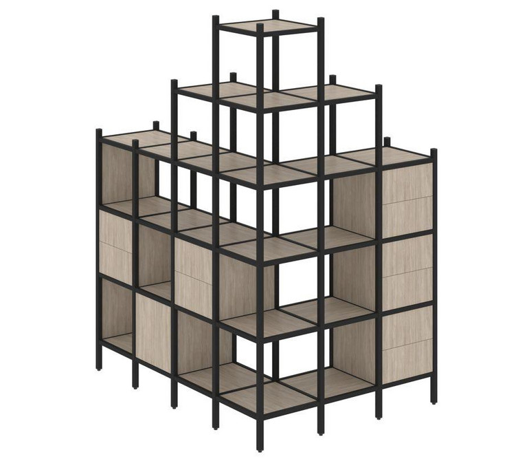 Loft Угловой внешний стеллаж наборный VR.L-56 Дуб Аттик/Металл Черный 1694*1278*2280
