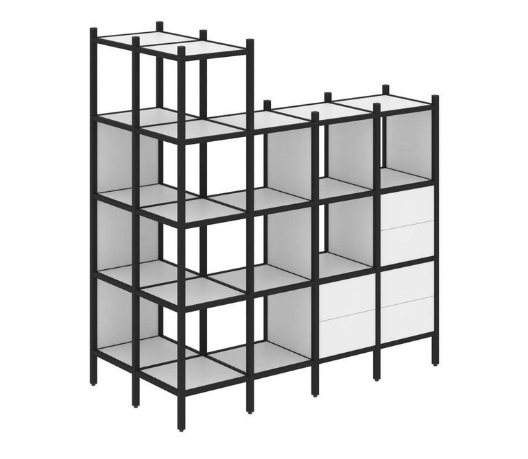 Loft Угловой внешний стеллаж наборный VR.L-57 Белый Бриллиант/Металл Черный 862*1694*1869