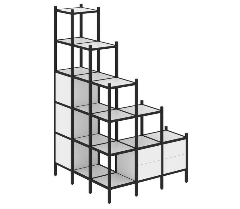Loft Угловой внешний стеллаж наборный VR.L-59 Белый Бриллиант/Металл Черный 1278*1278*2280