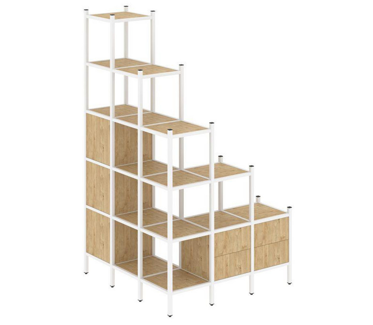 Loft Угловой внешний стеллаж наборный VR.L-59 Тиквуд Светлый/Металл Белый 1278*1278*2280