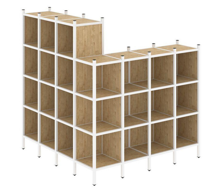 Loft Угловой внешний стеллаж наборный VR.L-60 Тиквуд Светлый/Металл Белый 1694*1694*1869