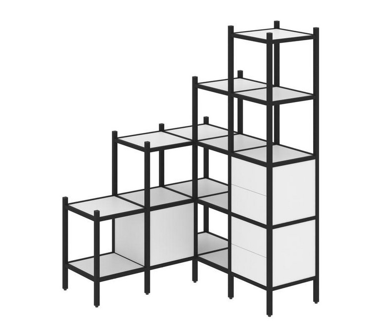 Loft Угловой внутренний стеллаж VR.L-40 Белый Бриллиант/Металл Черный 1278*1278*1869