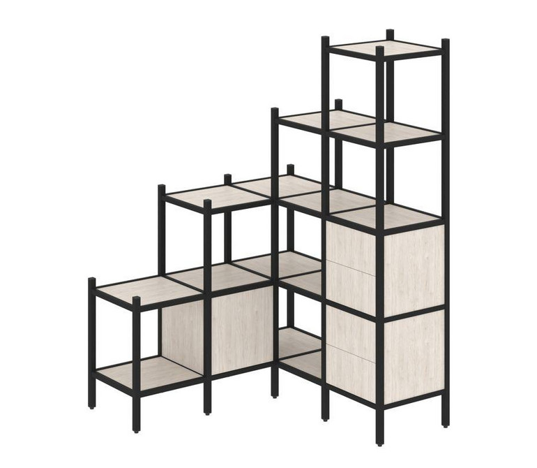 Loft Угловой внутренний стеллаж VR.L-40 Денвер Светлый/Металл Черный 1278*1278*1869