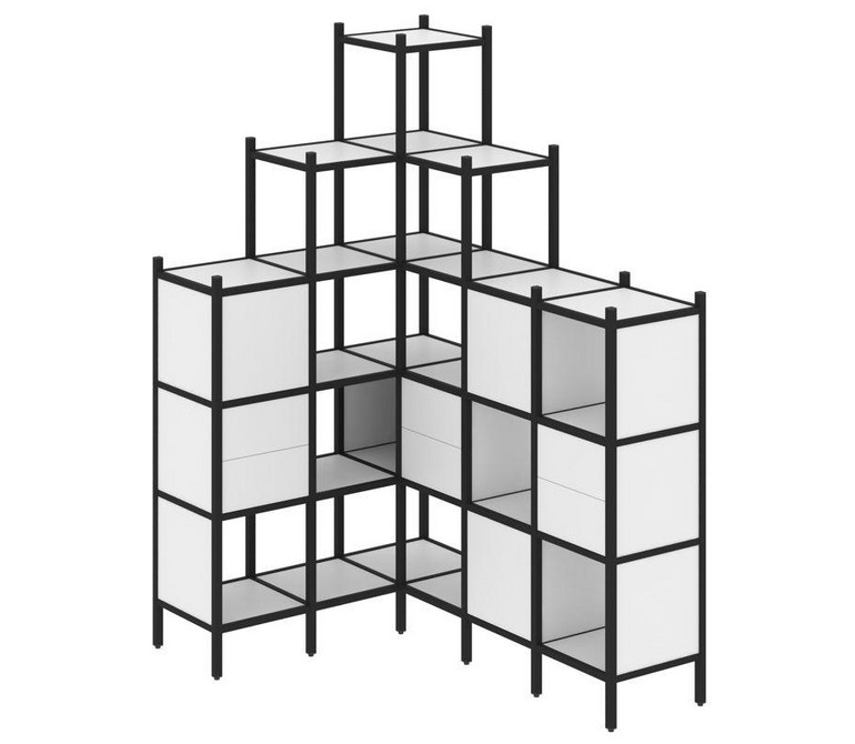 Loft Угловой внутренний стеллаж VR.L-43 Белый Бриллиант/Металл Черный 1278*1694*2280