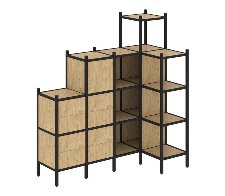 Loft Угловой внутренний стеллаж VR.L-48 Тиквуд Светлый/Металл Черный 1694*862*1869