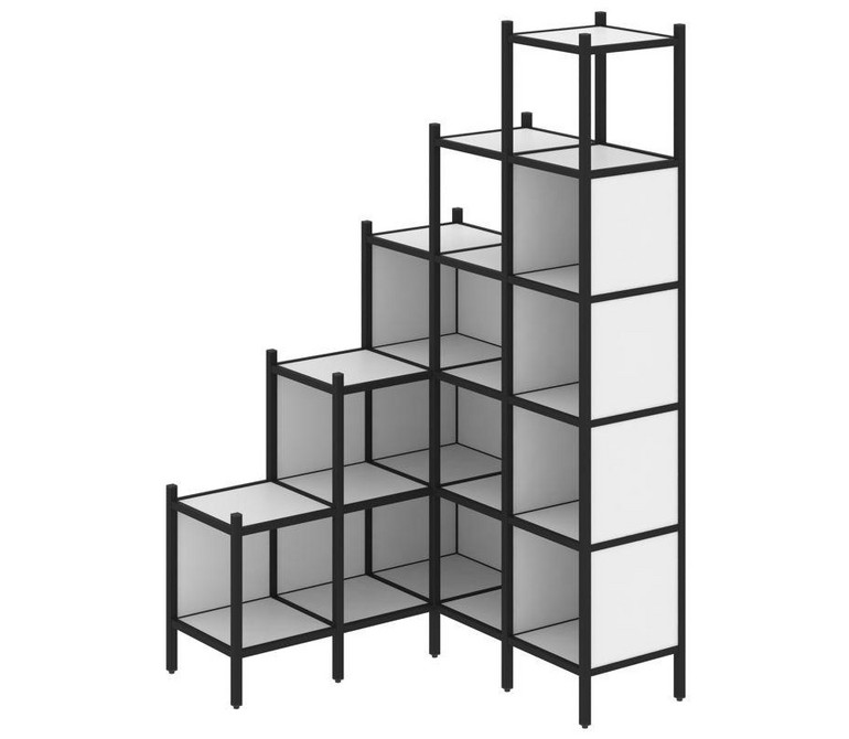 Loft Угловой внутренний стеллаж VR.L-49 Белый Бриллиант/Металл Черный 1278*1278*2280