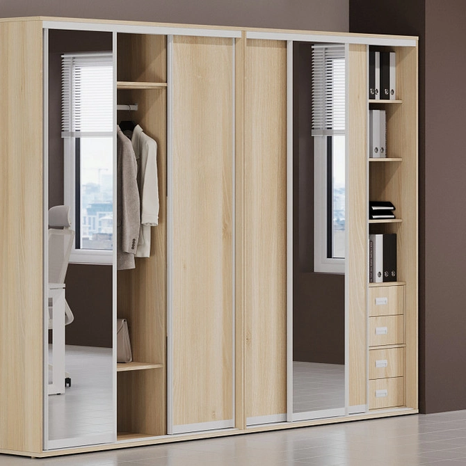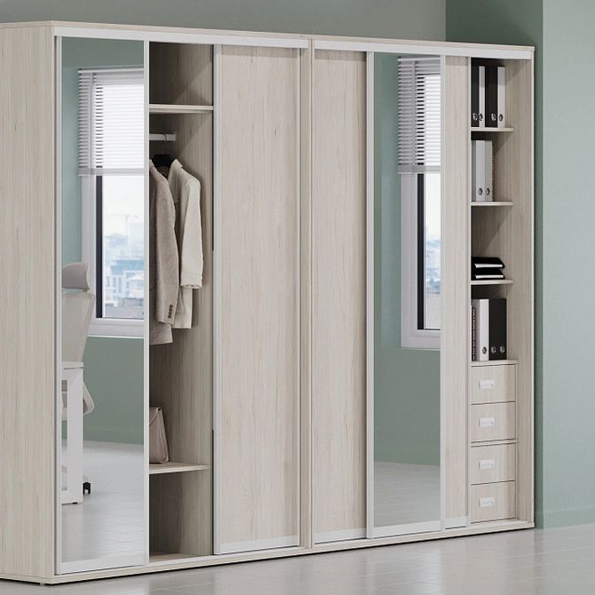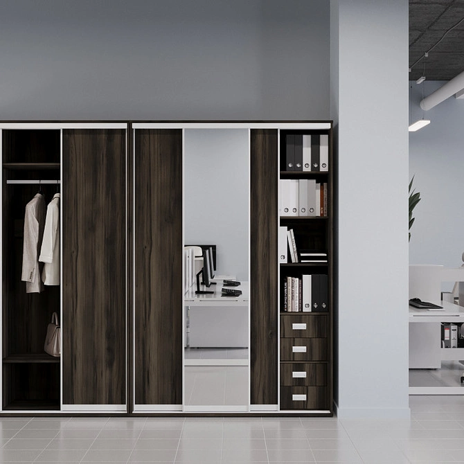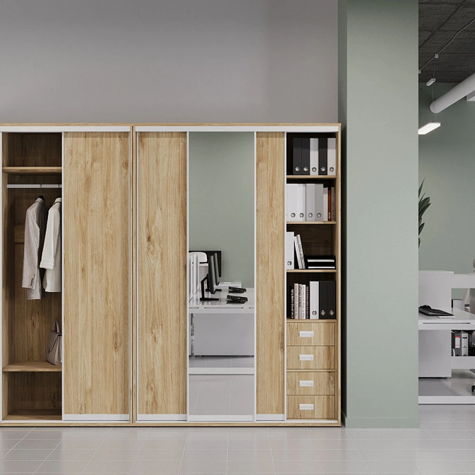 Шкафы-купе Maris обладают универсальным дизайном, который легко вписывается в любой интерьер, обеспечивая удобное хранение и значительную экономию места. Практичность и функциональность делают их незаменимыми в современном рабочем пространстве.