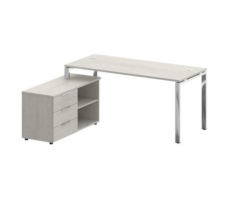 Metal System Direct Стол руковод. с тумбой БГ.СРТ-4.7 (L) Дуб Наварра/Нержавеющая Сталь 1700*1520*75