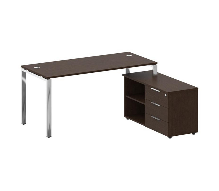 Metal System Direct Стол руковод. с тумбой БГ.СРТ-4.7 (R) Венге Цаво/Нержавеющая Сталь 1700*1520*750