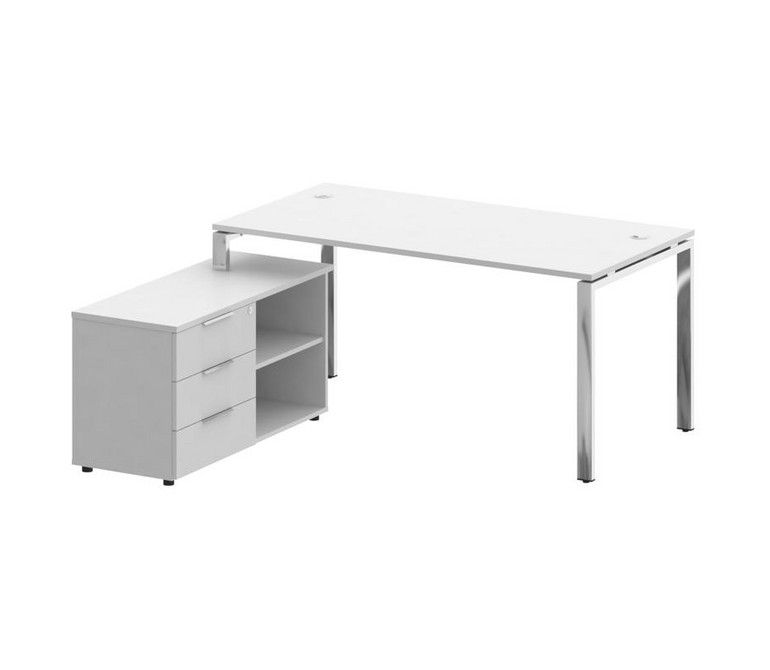Metal System Direct Стол руковод. с тумбой БГ.СРТ-4.8 (L) Белый/Нержавеющая Сталь 1700*1620*750