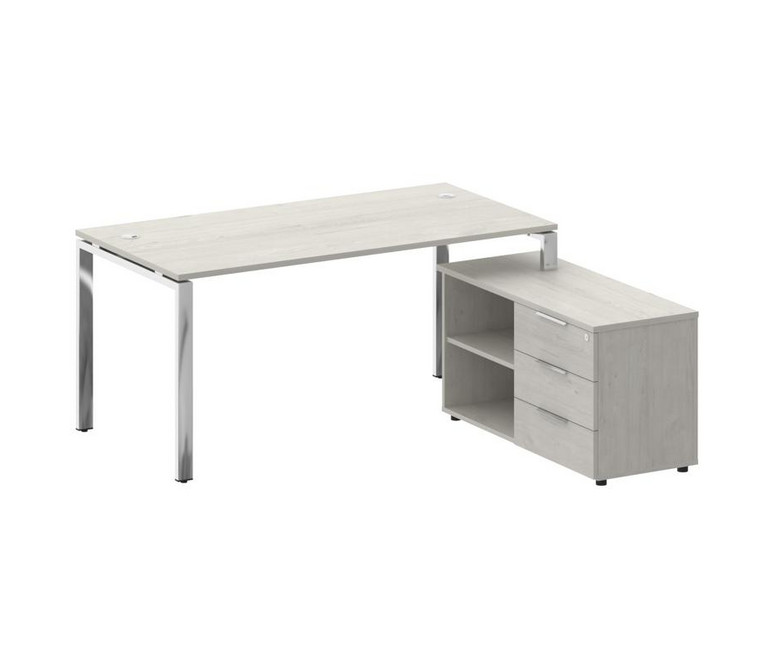 Metal System Direct Стол руковод. с тумбой БГ.СРТ-4.8 (R) Дуб Наварра/Нержавеющая Сталь 1700*1620*75