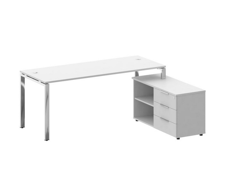 Metal System Direct Стол руковод. с тумбой БГ.СРТ-5.7 (R) Белый/Нержавеющая Сталь 1900*1520*750