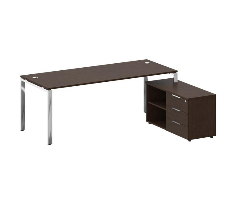 Metal System Direct Стол руковод. с тумбой БГ.СРТ-6.8 (R) Венге Цаво/Нержавеющая Сталь 2100*1620*750