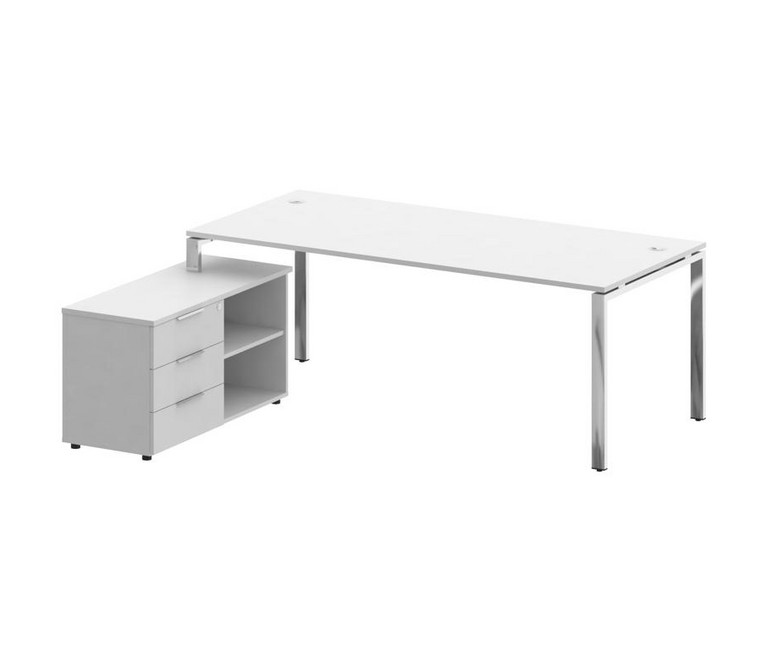 Metal System Direct Стол руковод. с тумбой БГ.СРТ-6.9 (L) Белый/Нержавеющая Сталь 2100*1720*750