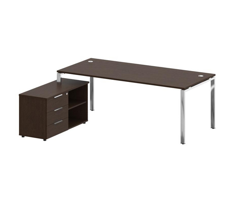 Metal System Direct Стол руковод. с тумбой БГ.СРТ-6.9 (L) Венге Цаво/Нержавеющая Сталь 2100*1720*750