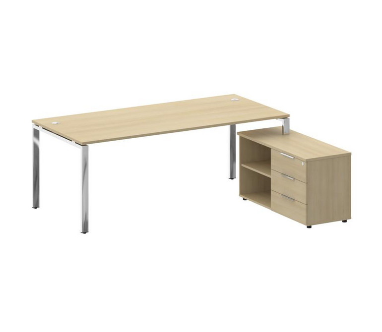 Metal System Direct Стол руковод. с тумбой БГ.СРТ-6.9 (R) Акация Лорка/Нержавеющая Сталь 2100*1720*7